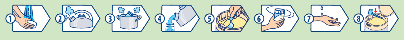 7. Pārbaudiet maisījuma temperatūru un ēdiniet savu mazuli, kad Friso® Gold 2 ir remdens.