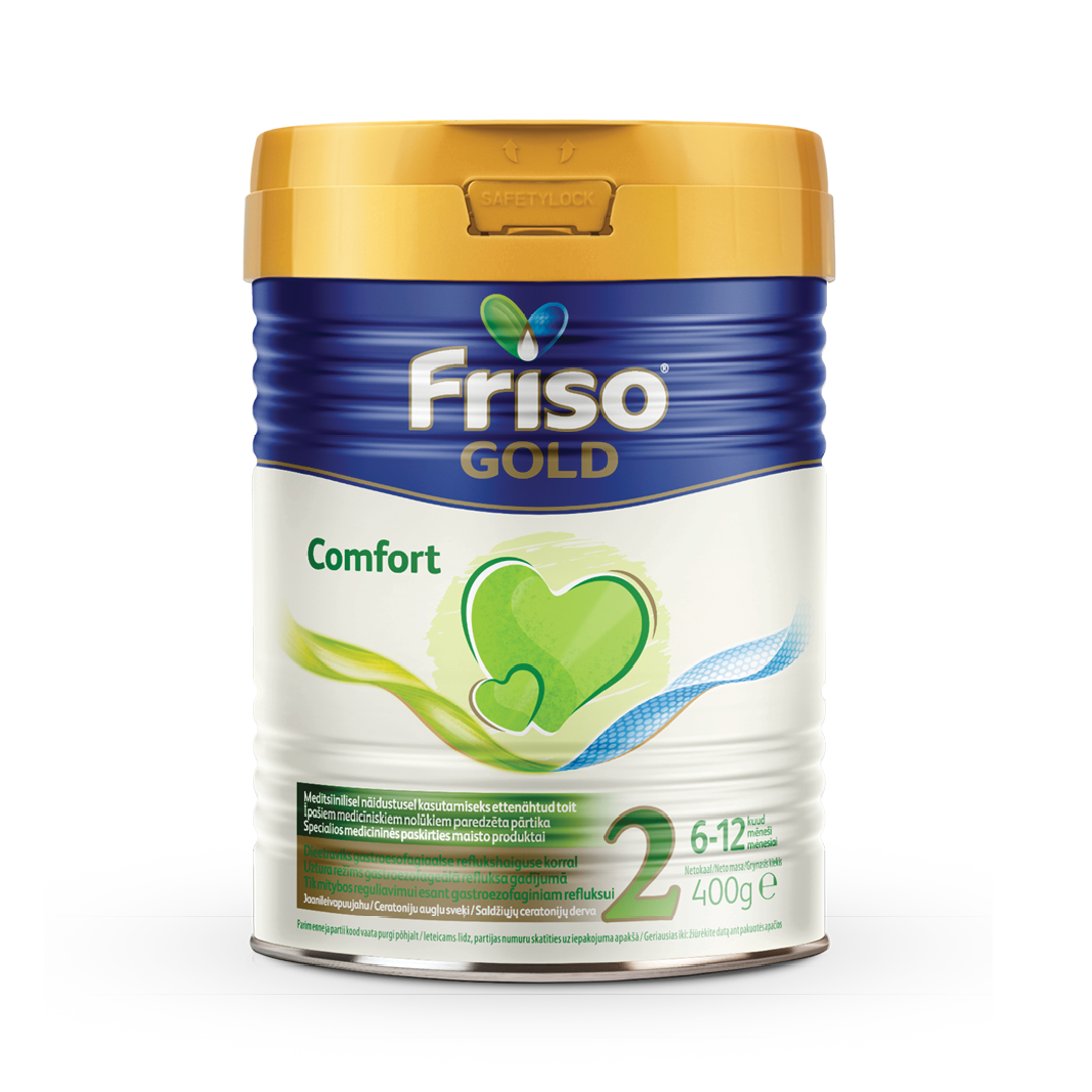Īpašiem medicīniskiem nolūkiem paredzēta pārtika. Uztura režīms gastroezofageālā refluksa gadījumā. Paredzēts zīdaiņiem ar nelieliem gremošanas traucējumiem – atgrūšana, kolikas, aizcietējumi. Friso® Gold Comfort 2 ir papildu ēdināšanas piena maisījums zīdaiņiem ar pievienotiem Ceratoniju augļu sveķiem. Friso® Gold Comfort 2 nav piemērots zīdaiņiem no dzimšanas. Friso® Gold Comfort 2 ir piemērots uzturvielu avots zīdaiņiem no 6 līdz 12 mēnešu vecumam. Sākot ar 6 mēnešu vecumu, bērniem ir nepieciešams saņemt arī papildēdienu, ne tikai piena maisījumu. Produkts paredzēts lietošanai medicīnas personāla uzraudzībā. Gatava maisījuma konsistence ir biezāka, tāpēc ieteicams lietot knupi ar lielāki (L) caurumiņu. Mātes piens ir vislabākais uzturs jūsu mazulim.