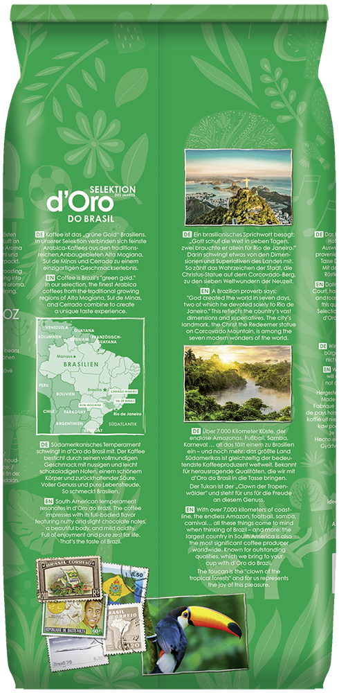 Kafija ir Brazīlijas “zaļais zelts”. Mūsu izlasē ir apvienotas labākās Arabica kafijas no tradicionālajiem Alta Mogiana, Sul de Minas un Cerrado audzēšanas reģioniem, lai radītu unikālu garšas pieredzi. Kafija izceļas ar piesātinātu garšu – riekstu un šokolādes. Pilna baudījuma un patiesa dzīvesprieka.