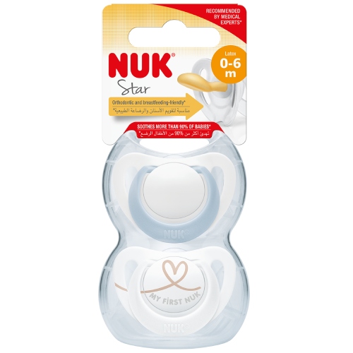 Ar NUK Star mānekli 99% mazuļu tiek nomierināti. 96% ar krūti barojošu mammu novērtē kā krūtsbarošanai draudzīgu. Un vairāk nekā 90% ortodontu māneklīša īpaši žoklim piemērotās formas dēļ to rekomendē.*