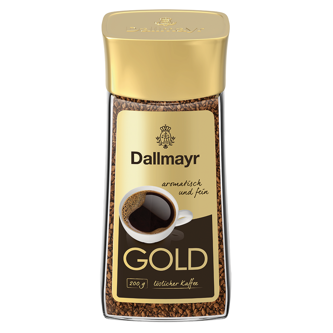 Dallmayr Gold šķīstošā kafija 200g ar maigu, sabalansētu garšu un bagātīgu aromātu. Ērta un kvalitatīva izvēle ātram ikdienas kafijas baudījumam. Izsmalcināta šķīstošā kafija. Ar piesātinātu aromātu un garšu -ideāla kafijas cienītājiem, kuri novērtē kvalitāti, kā arī ātru un vieglu pagatavošanu. Apmēram 100 tasītēm. Viegli šķīst.